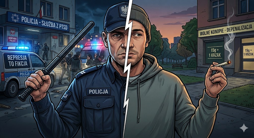 Wybór używki staje się wtedy formą desperackiego „samoleczenia”. Przez dekady jedynym akceptowalnym społecznie zaworem bezpieczeństwa była wódka – „tradycyjne” narzędzie do zapijania traum. Dziś, gdy wzorce kulturowe się zmieniają, część funkcjonariuszy wybiera inne substancje, np. marihuanę, by po prostu móc zasnąć po ciężkiej szychcie. Paradoks polega na tym, że państwo, zamiast pomóc im udźwignąć ciężar służby, woli ich kryminalizować, zamieniając pacjenta w przestępcę.